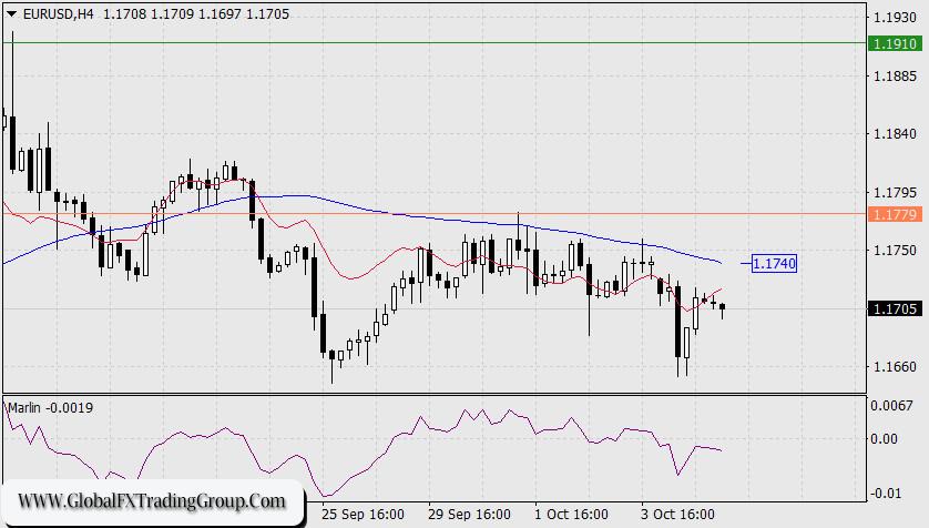On the 4-hour chart, the weakness of the bulls suggests that the price may not break above the MACD resistance line (1.1740) on the first attempt. Likewise, the Marlin oscillator remains in the negative zone and is unlikely to support price growth before the end of the day. We expect the price to increase slowly.