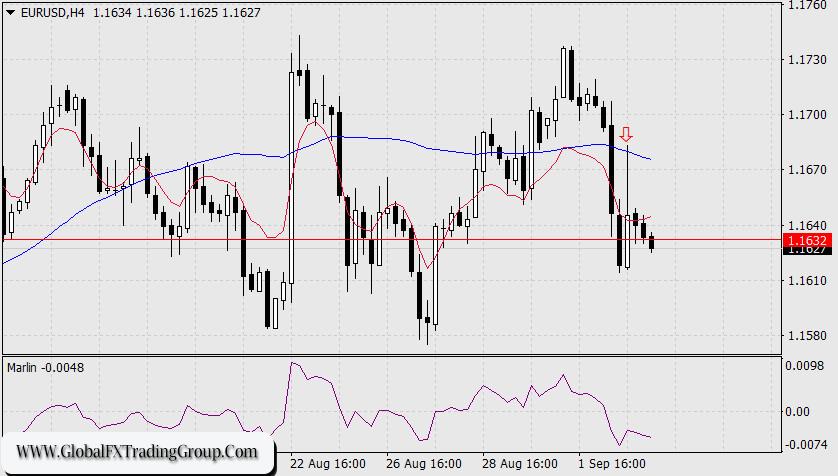 On the daily chart, price is breaking below the support level at 1.1632; the Marlin oscillator has entered the downtrend territory. A target of 1.1495 is now opening up for the price. It seems likely the Nonfarm payrolls data will also not disappoint.