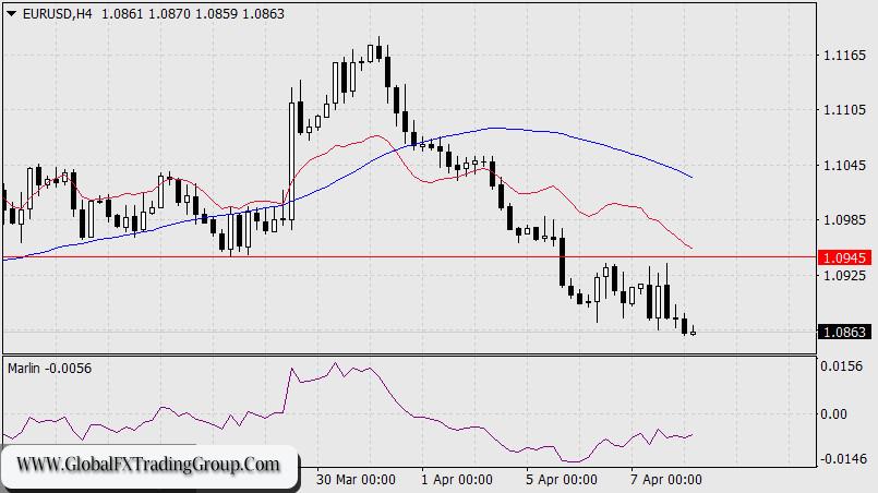On the four-hour chart, the Marlin Oscillator is growing in the downtrend zone, this can be interpreted in two ways: the oscillator rarefaction before further decline into the oversold area and a slight convergence with the price, indicating the expected closing of positions.