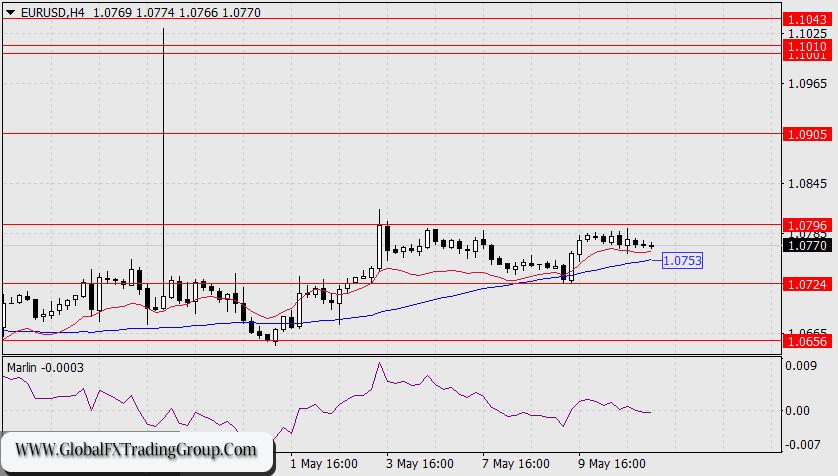 On the 4-hour chart, the price intends to fall below the MACD indicator line (1.0753). When this happens, the price may have the chance to reach the nearest target at 1.0724. Consolidation around 1.0724 opens up the target range of 1.0636/56, where the price briefly stayed on May 1st.